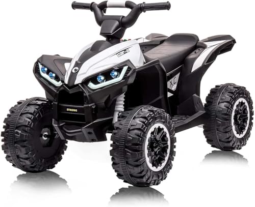 12V Electric Quad Bike for Kids with LED Headlights, Music - Black and White