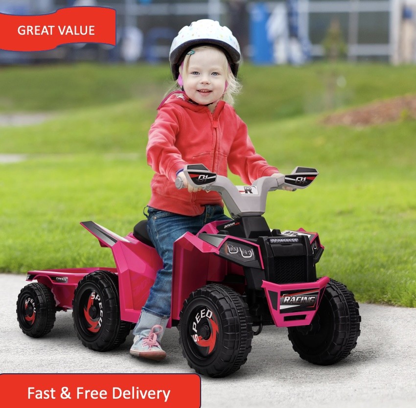 Electric Quad Bike 6V Kids Ride On w/ Back Trailer for Ages 18-36 Months - PINK