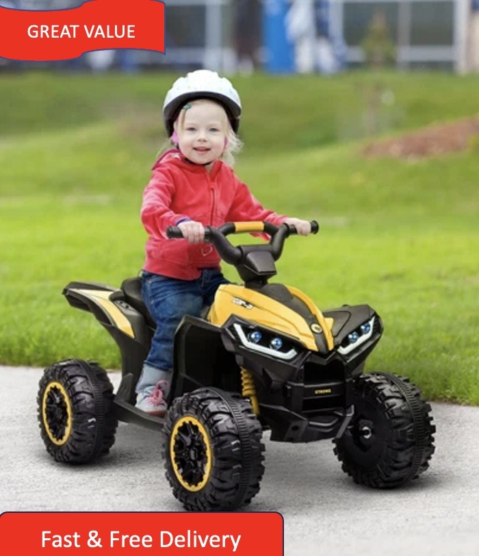 Homcom 12V Yellow Electric Quad Bike For Kids Ride On Car ATV Toy For 3-5 Years, Yellow