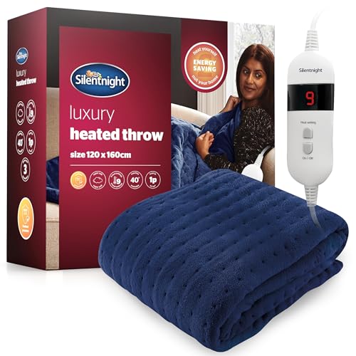 Silentnight Comfort Control Heated Throw Blanket - Luxury Fleece Electric Heated Overblanket for Sofa Bed with 9 Heat Settings, Fast Heat-up and Safety Shut Off - Machine Washable - 120x160cm - Navy