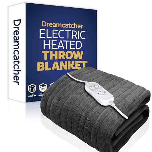 Dreamcatcher Grey XL Heated Throw Electric Blanket, 180 x 130cm Heated Blanket Machine Washable Soft Fleece Electric Throw Overblanket with 12HR Timer and 9X Control Heat Settings