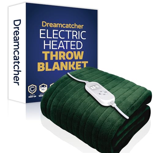 Dreamcatcher Green Heated Throw Electric Blanket, 160 x 120cm Heated Blanket Machine Washable Soft Fleece Electric Throw Overblanket with 12HR Timer and 9X Control Heat Settings