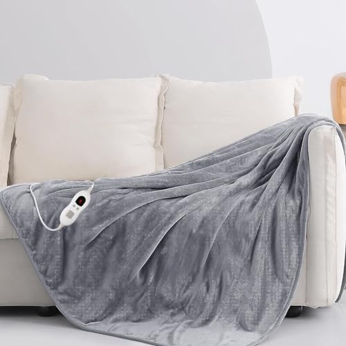 LYMYBETY Heated Throw Electric Blanket, 160 X 130cm Flannel Heated Blanket, 6 Heat and 1-8h Timer, Grey Electric Throw for Sofa and Bed, Fast Heating Electric Overblanket, Machine Washable