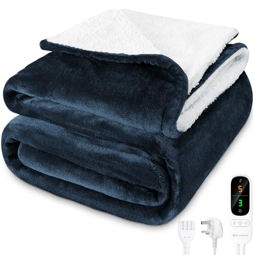 MYCARBON Heated Blanket 160 * 180cm, Soft Flannel Sherpa Electric Heated Throw Blanket Fleece Overblanket with 9h Timer, 6 Heat Settings, Machine Washable, Overheat Protection [New Upgraded] (Blue)