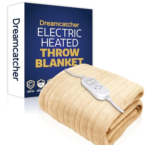 Dreamcatcher Cream Heated Throw Electric Blanket, 160 x 120cm Heated Blanket Machine Washable Soft Fleece Electric Throw Overblanket with 9HR Timer and 9X Control Heat Settings