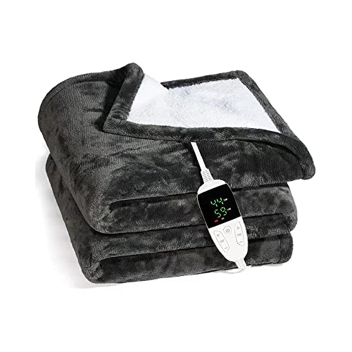 MAYHORY Heated Throw Electric Blanket, 160 X 130cm Flannel+Arctic Fleece Heated Blanket, 10 Heat & 3 Timer Level,Electric Throw for Sofa & Bed, Fast Heating Electric Overblanket,Machine Washable(Grey)