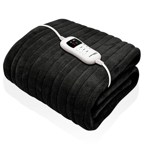 Purus Black XL Heated Throw Electric Blanket, 180 x 130cm Heated Blanket Machine Washable Soft Micro Fleece Electric Throw Overblanket with 12HR Timer and 9x Control Heat Settings