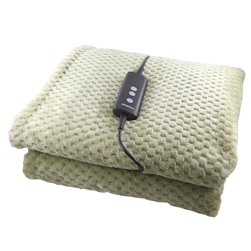 Schallen Waffle Soft Fleece Heated Electric Throw Over Blanket Honeycomb Overblanket with Timer and 10 Heat Settings for Sofa and Bed | Machine Washable | Large 160 x 120cm (Khaki | Sage Green)