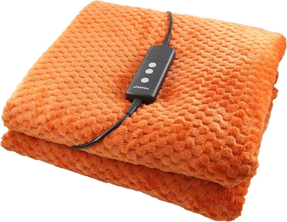 Schallen Waffle Soft Fleece Heated Electric Throw Over Blanket Honeycomb Overblanket with Timer and 10 Heat Settings (Burnt Orange)