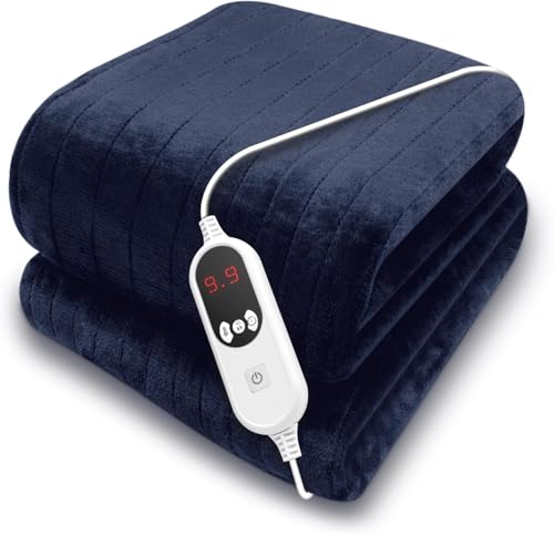 Purus Navy XL Heated Throw Electric Blanket, 180 x 130cm Heated Blanket Machine Washable Soft Micro Fleece Electric Throw Overblanket with 12HR Timer and 9x Control Heat Settings