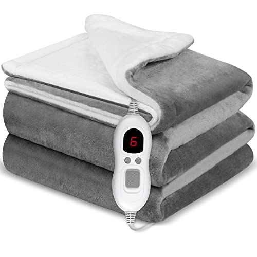 MYCARBON Heated Blanket 160 * 180cm, Soft Flannel Sherpa Electric Heated Throw Blanket Fleece Overblanket with 9h Timer, 6 Heat Settings, Machine Washable, Overheat Protection [New Upgraded] (Grey)