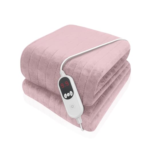 Purus Pink Heated Throw Electric Blanket, 160 x 120cm Heated Blanket Machine Washable Soft Micro Fleece Electric Throw Overblanket with 12HR Timer and 9x Control Heat Settings