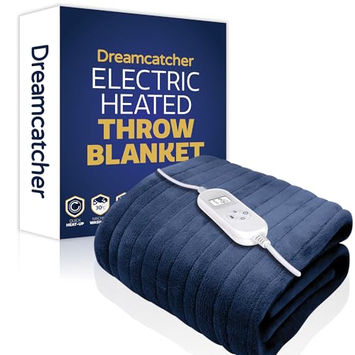 Dreamcatcher Navy XL Heated Throw Electric Blanket, 180 x 130cm Heated Blanket Machine Washable Soft Fleece Electric Throw Overblanket with 12HR Timer and 9X Control Heat Settings