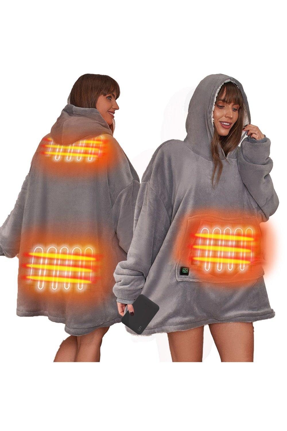 Heated Electric Oversized Hoodie Blanket Sherpa Fleece including Power Bank