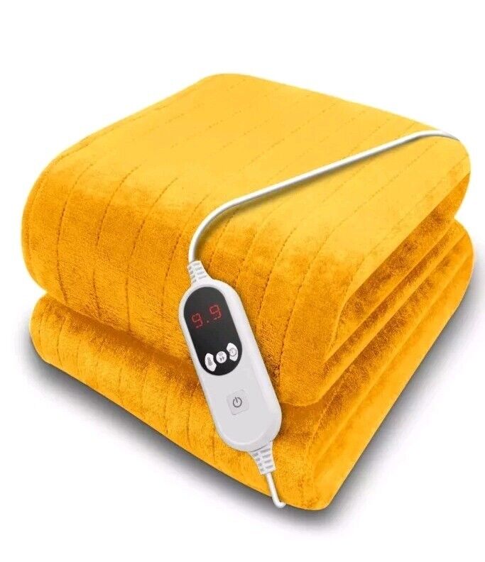 Heated Throw Soft Fleece Electric Blanket Gold 160x120cm 9 Heat & Timer