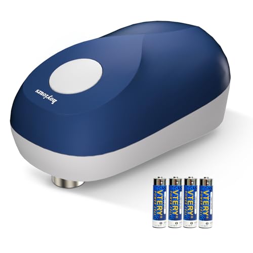 Electric Can Opener, hoyiours One Touch Automatic Tin Opener with Auto Off, Cordless Tin Opener for Arthritic Hands, Smooth Cutting Edge, 4 AA Batteries Equipped (Navy Blue)