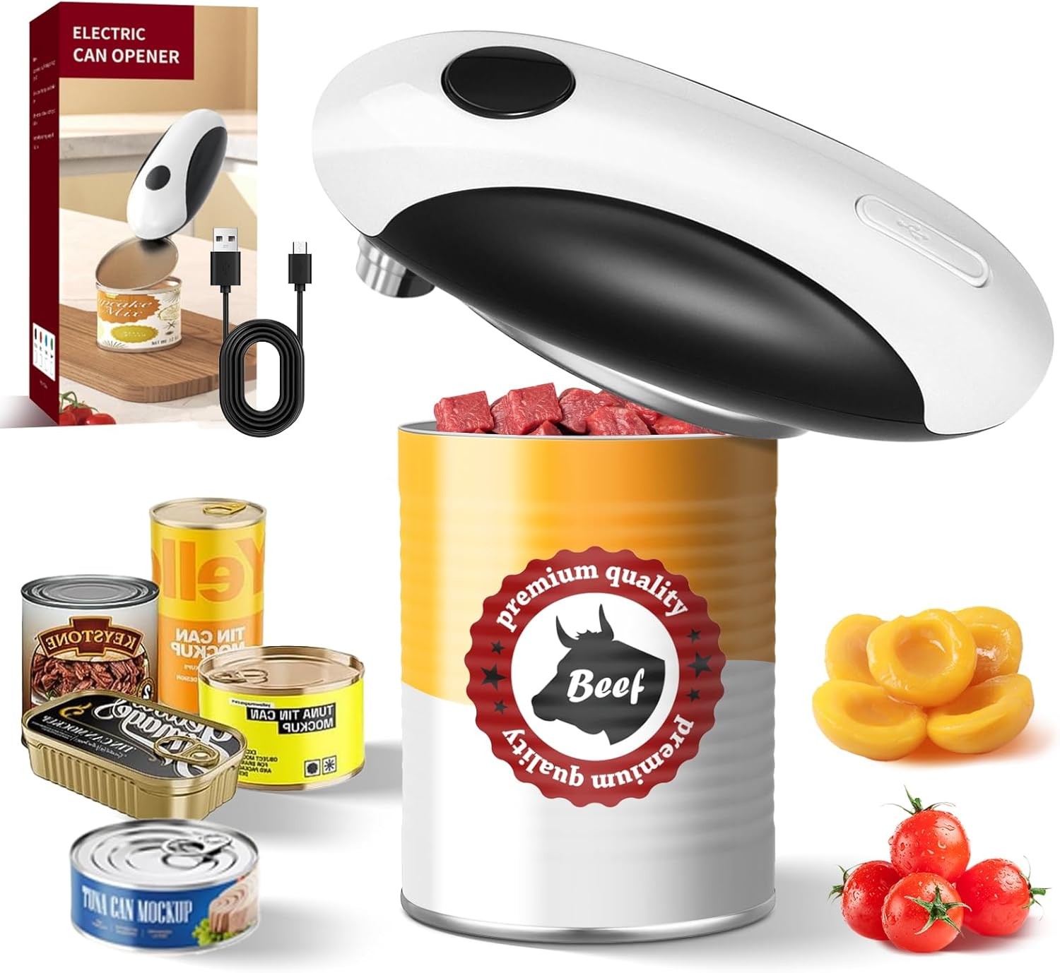 Electric Can Opener, Rechargeable and USB Cable Automatic Can Opener with One-To