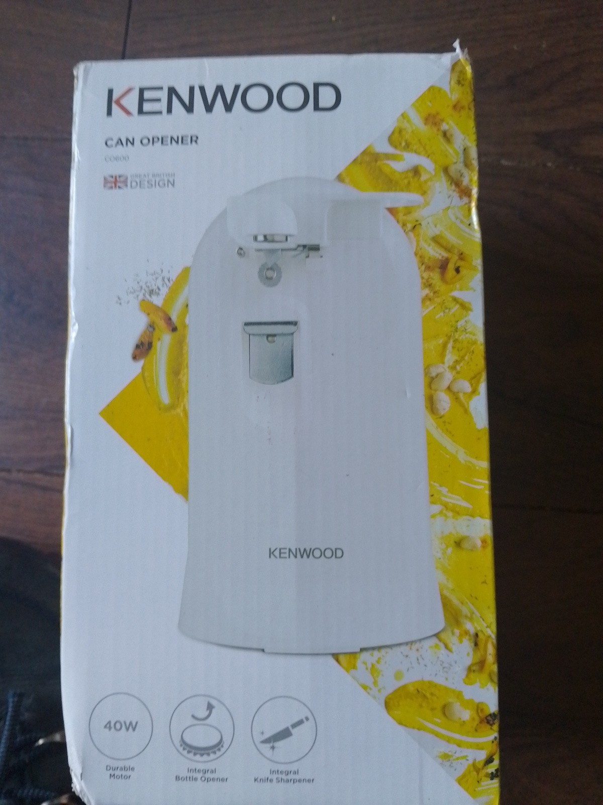 New Kenwood Electric Can Opener with Integrated knife Sharpener & Bottle Opener