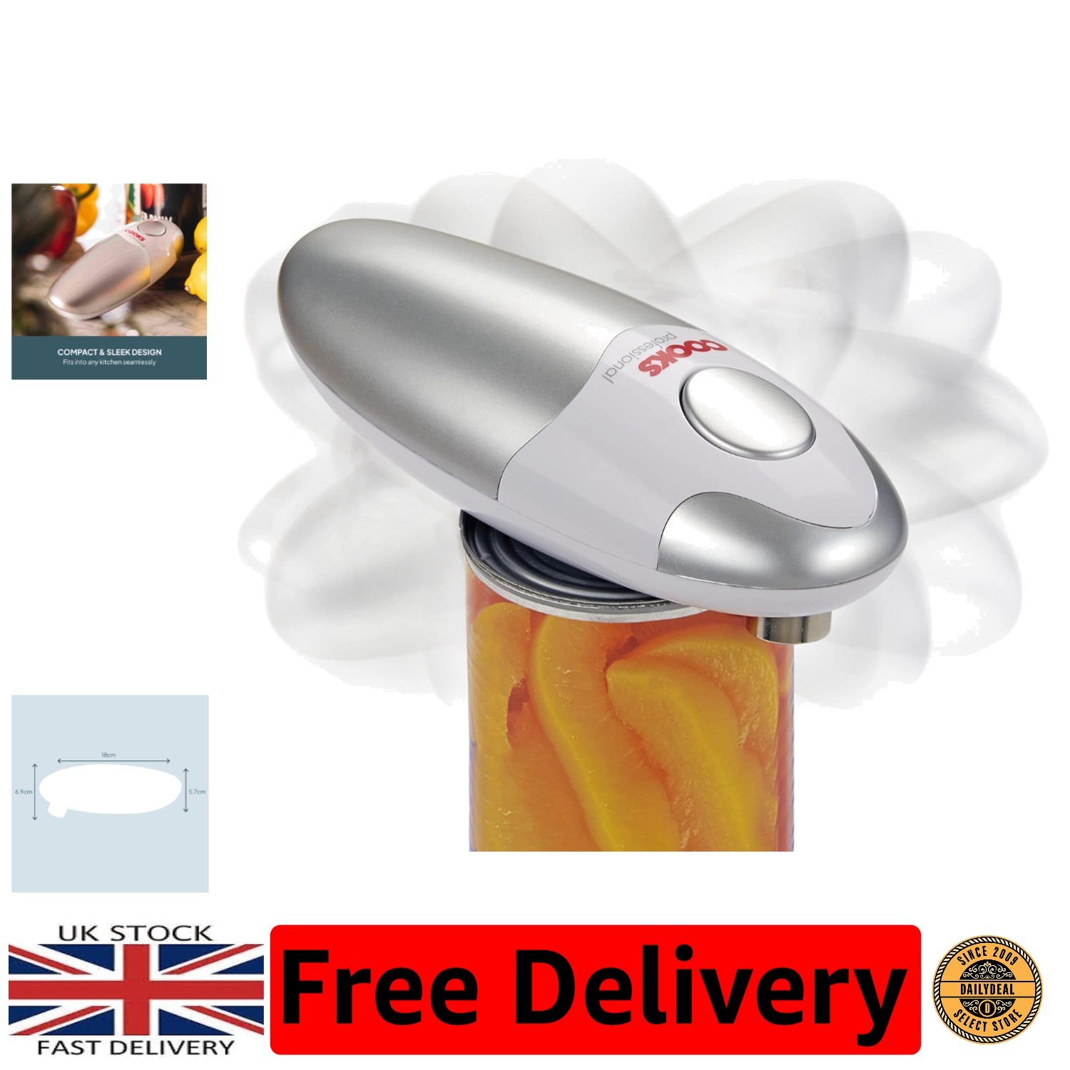 Cooks Professional Electric Can Opener | Automatic Cordless Tin Opener for Arthritic & Arthritis Hands | Hands Free Operation Can Openers | One Touch Design (Silver)