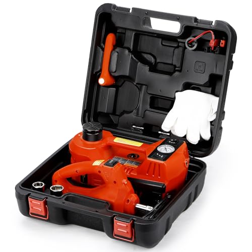 SEESII Electric Car Jack Kit: 5 Ton 45 cm Lift Range Car Jack Hydraulic with Impact Wrench and Tire Inflator, 12V Portable Floor Jack for SUV/Truck/Sedan Emergency Roadside Tire Change & Garage Repair