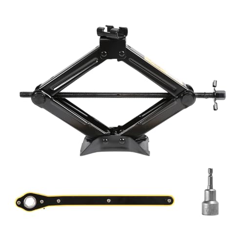 2 Ton Heavy-Duty Scissor Jack Car Lift - Labour-Saving Ratchet Handle & Electric Drill Compatible, Thickened Steel Plate Construction for Cars/SUVs/MPVs, Emergency Car Jack Kit with Lifting Wrench