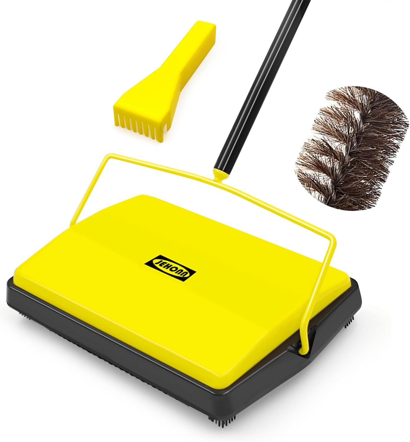 JEHONN Carpet Sweeper Manual with Horsehair, Non Electric Quite Floor Rug Rolle