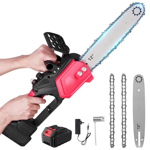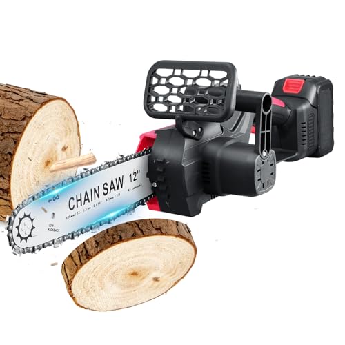 Chainsaw Cordless 12inch, Powerful Electric Chain Saw, 21V Cordless Chainsaws with Battery and Charger, Battery Chainsaw with 2 Chains, Security Lock Handheld Small Chain Saw for Garden Tree Pruning
