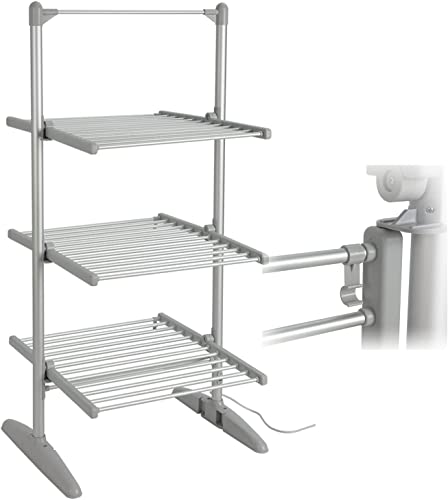 Vivo Technologies 3-Tier Heated Clothes Airer, Foldable Electric Clothes Drying Rack Electric Clothes Horse with 36 Heated Rails for Quick Drying, 21