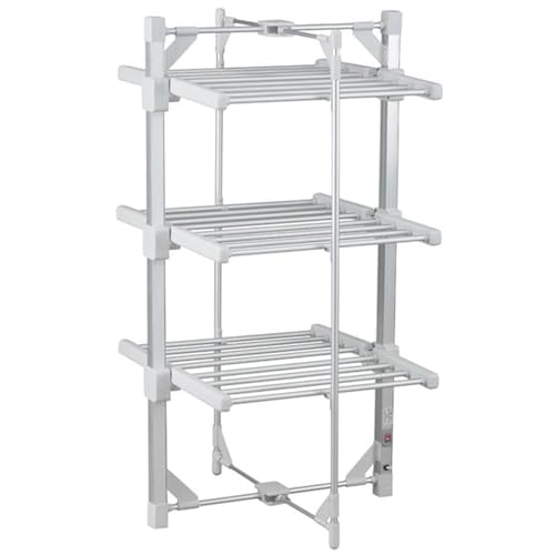 Electric Heated Clothes Dryer, Energy Efficient Foldable indoor Airer, Super Safe Laundry Drying Horse Rack (Silver)
