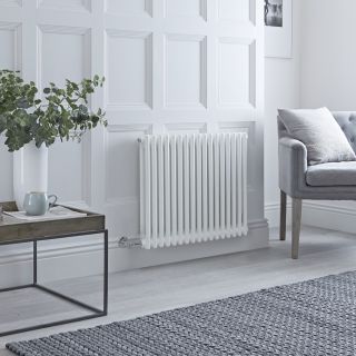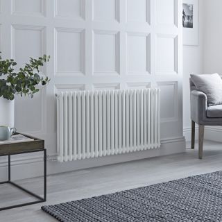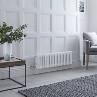 Milano Windsor - Traditional White Horizontal Triple Column Electric Radiator - 300mm x 605mm - with Choice of Wi-Fi Thermostat