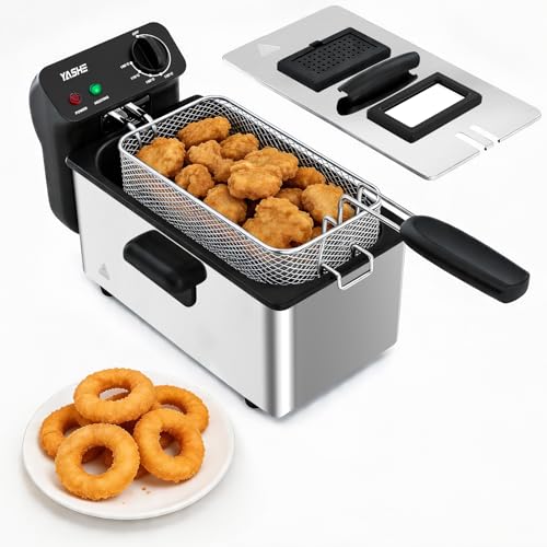 YASHE Deep Fat Fryer, 3.2QT Electric Countertop Deep Fryer with Viewing Window, 2000W Stainless Steel Fryer, Adjustable Temperature Control, Removable Basket & Oil Pot, Easy to Clean
