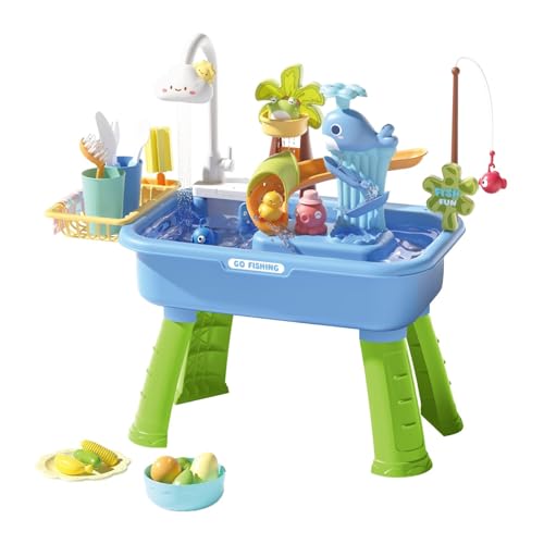 TWTCZOZ Toy Kitchen for Role-play, Complete with Toys, Electric Water Circulation, Dishwasher, And Fishing Table, Blue