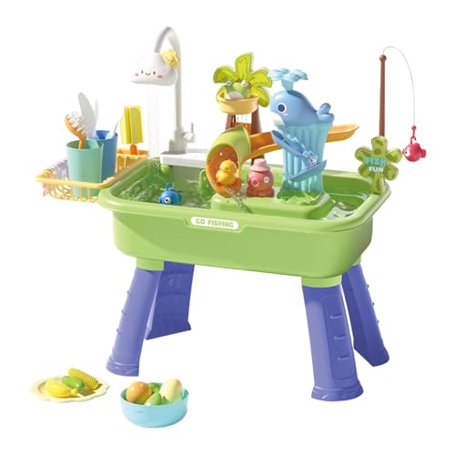 Play Sink with Running Water, Water Play Table Equipped With Electric Faucet,Electric Circulating Water-Dishwasher Kitchen Sink,Detachable Fishing Game Toy,Pretend PlayDishwasher Gift Set (Green)