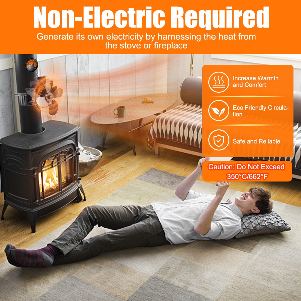 Wood Stove Fan Heat Powered Non-Electric Shaped Heat Distribution 4-B