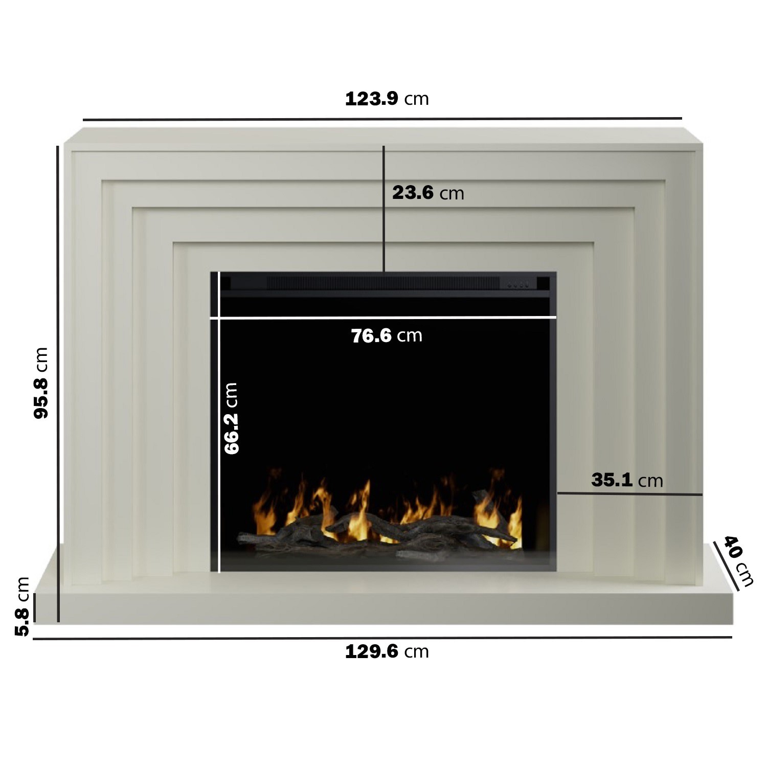 Endeavour Fires Staxton 39" Electric Fireplace Suite, Off-White Surround with Realistic Flame Effect Fire, 1 & /2kW Eco Heater, 7-Day Programmable Remote Control