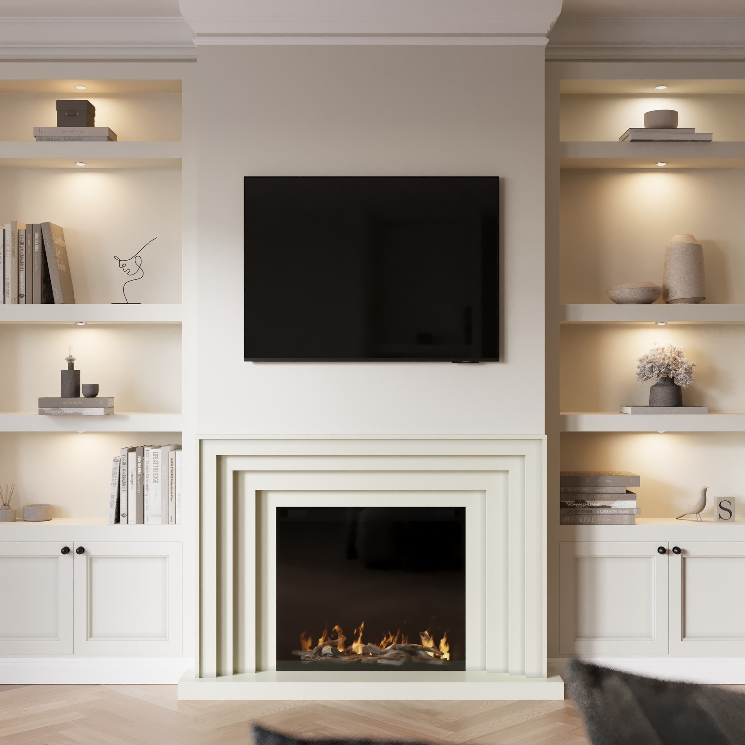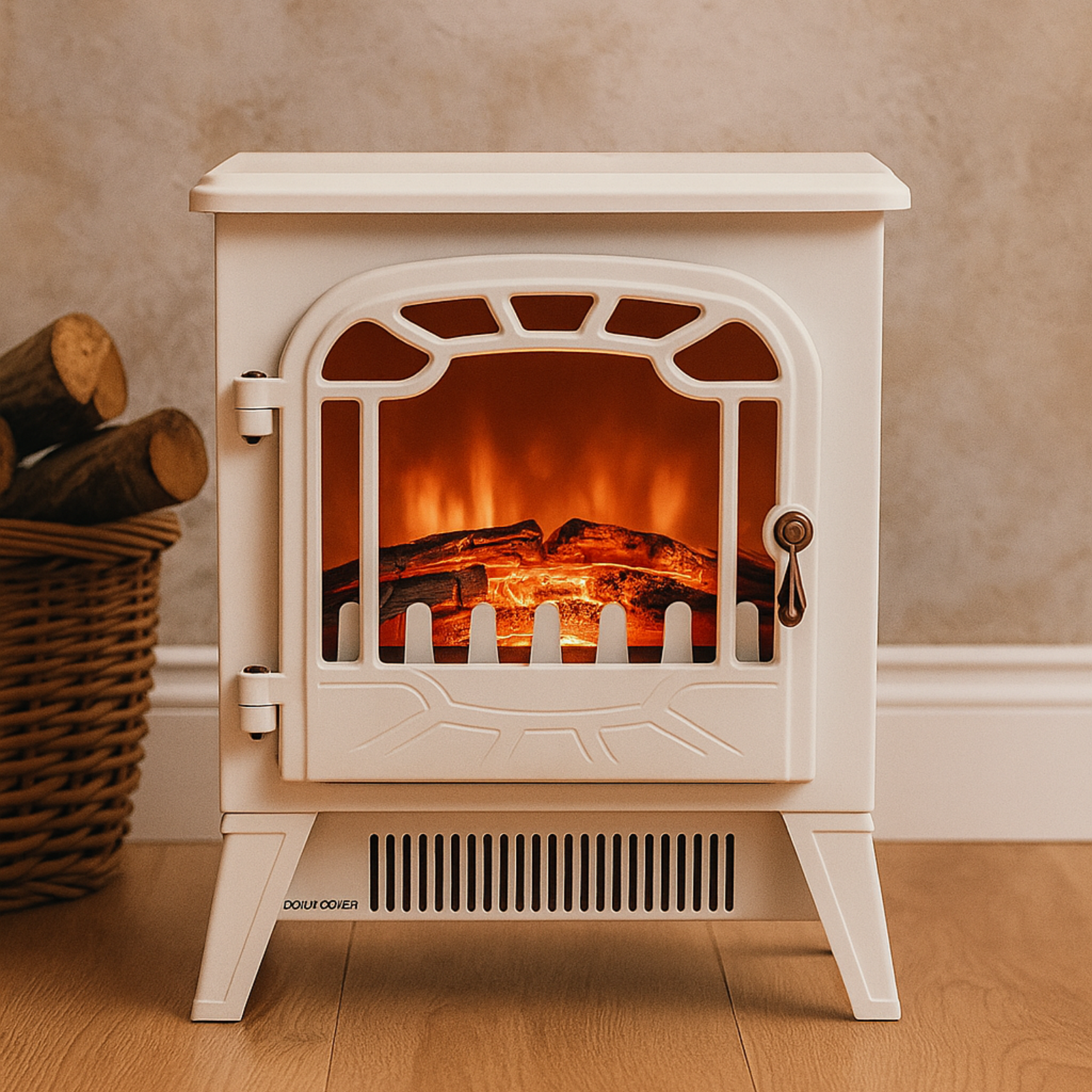 Cream Fire Surround and Electric Fire with Logs - AmberGlo AGL087