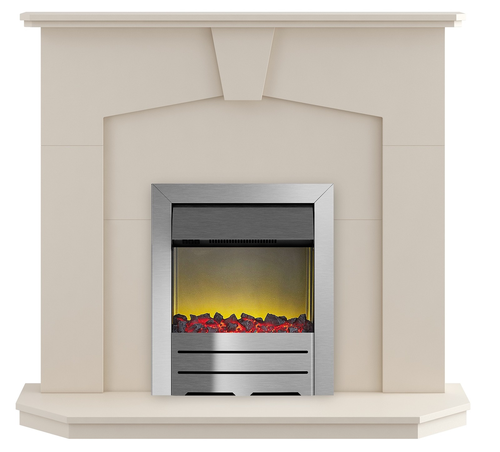 Adam Cotswold Fireplace Suite in Stone Effect with Blenheim Electric Fire Chrome, 48 Inch