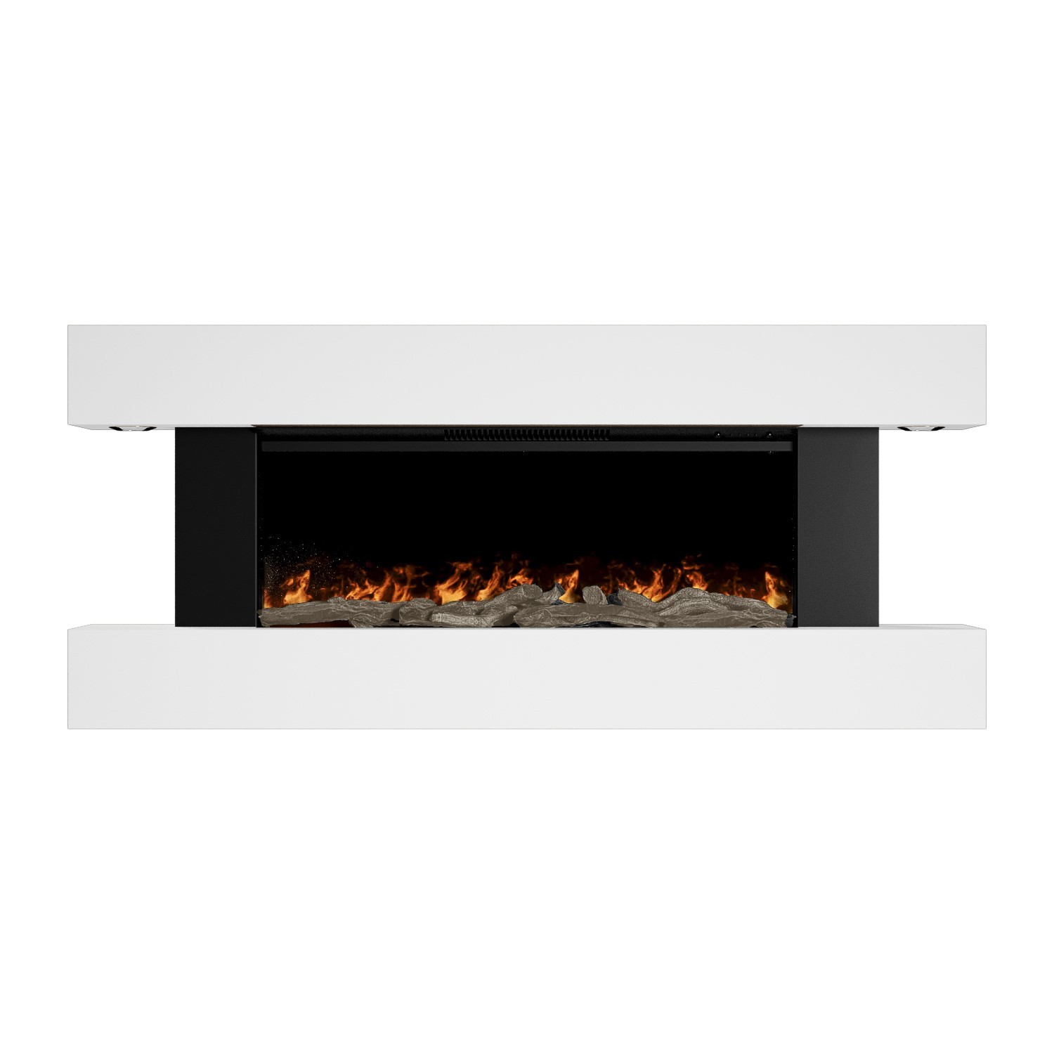 (Fire Surround White) Modern Electric Fireplace with Remote Control & LED Log Fire Effect