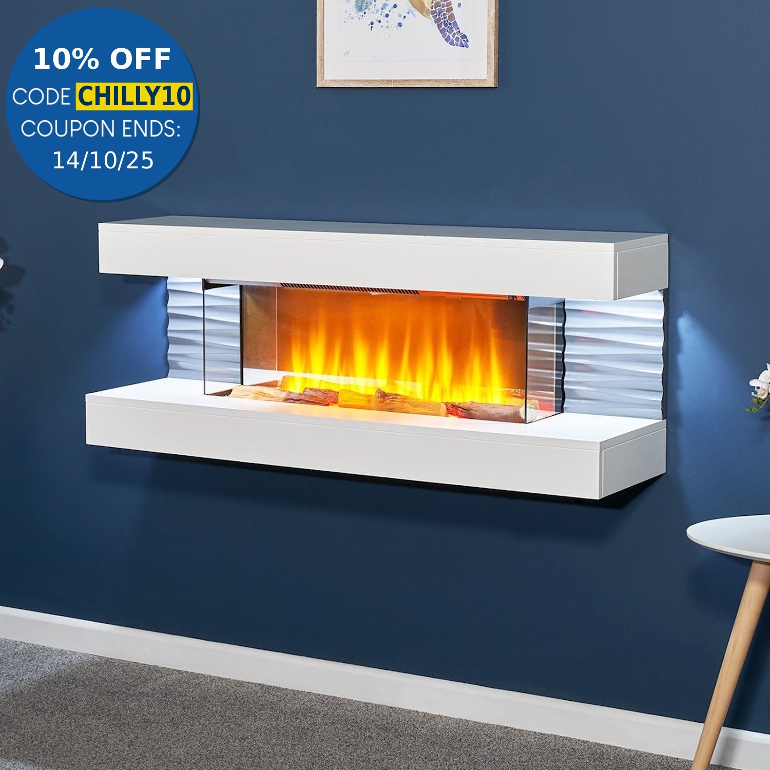 Sureflame WM-9332 Electric Wall Mounted Fireplace Heater White Remote Control