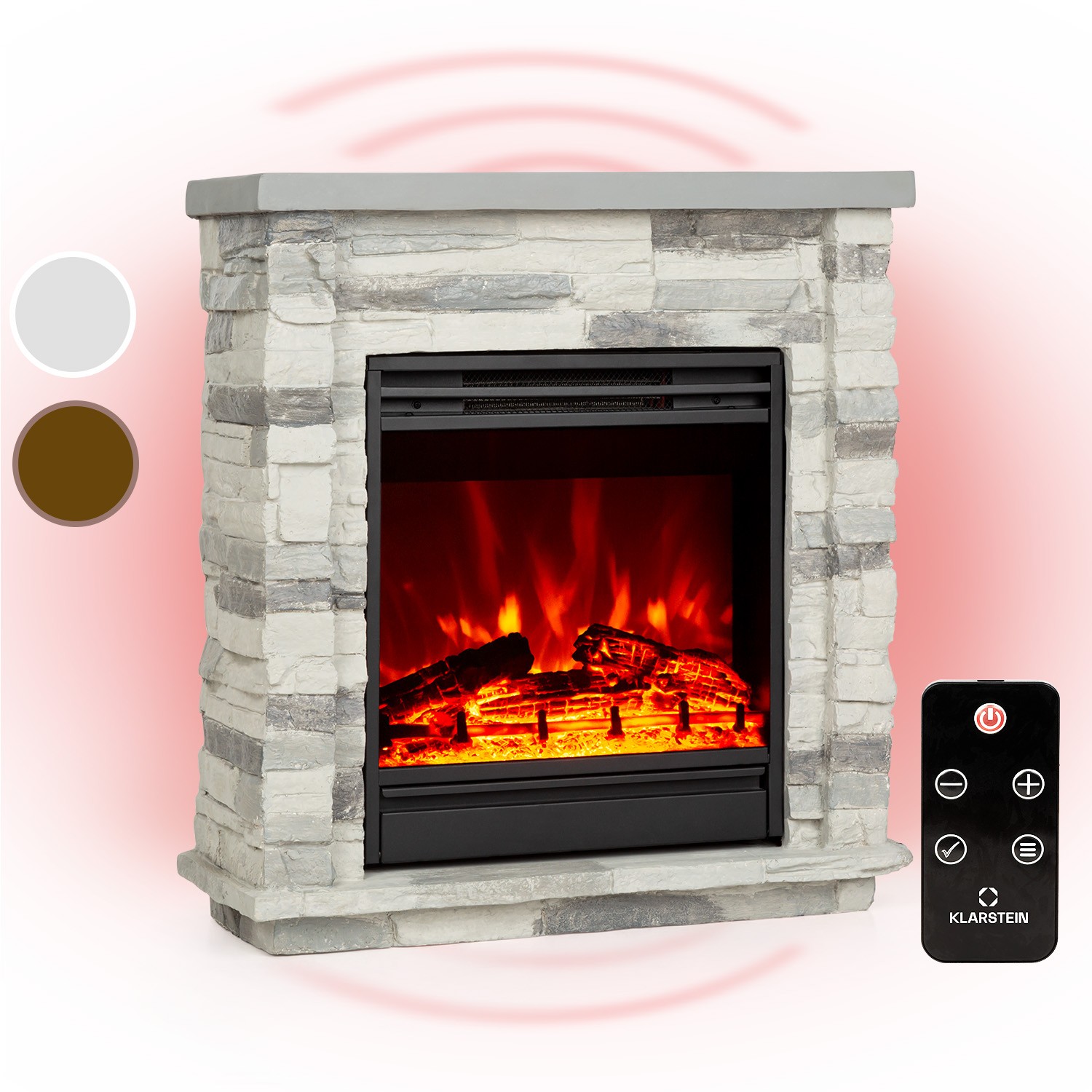 Fireplace Electric Heater Freestanding Indoor Polystone Timer Remote LED 1800 W