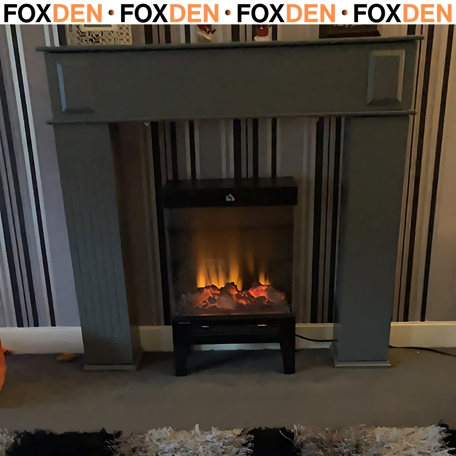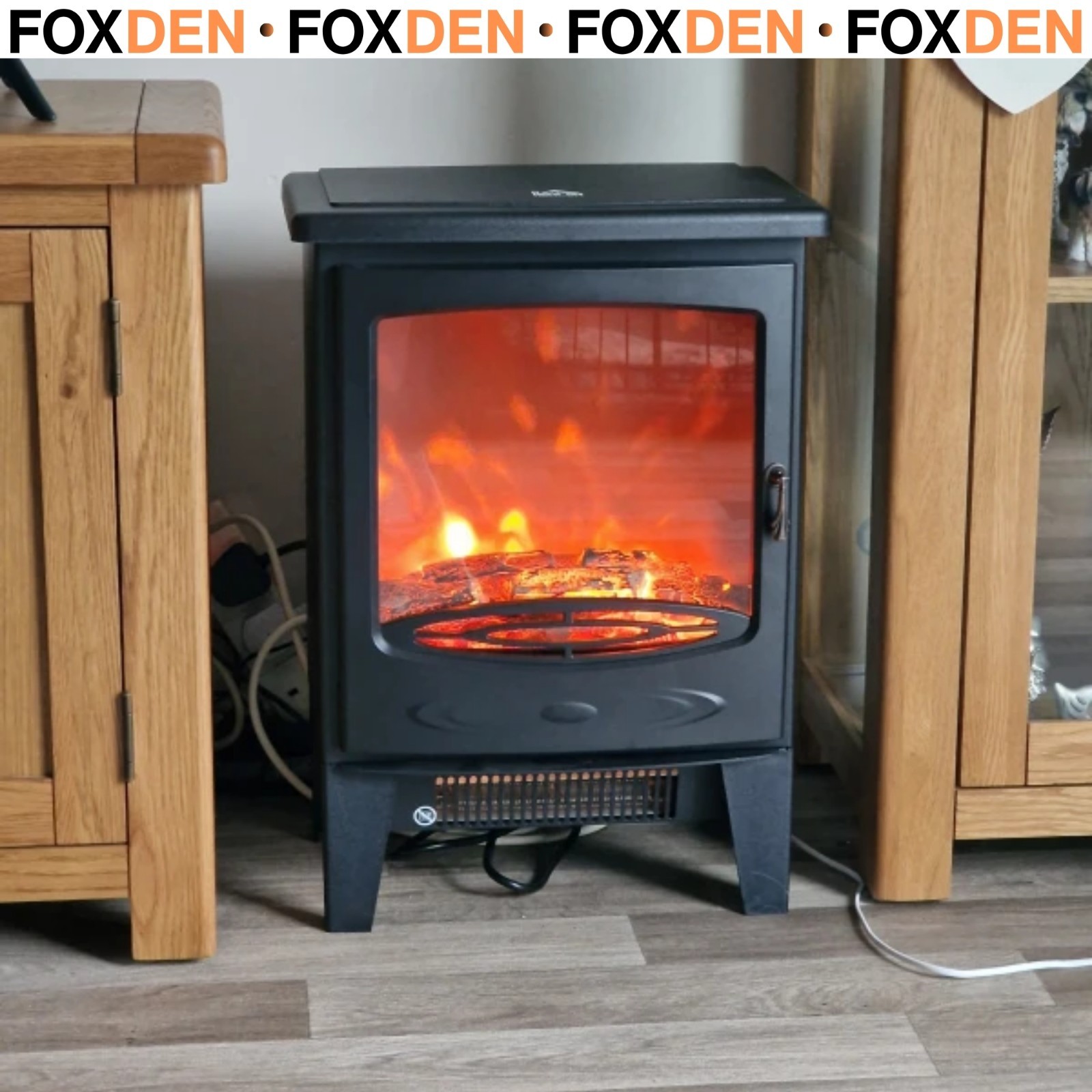 Black Electric Fireplace Small Heater Log Fire Effect Quiet Freestanding Stove