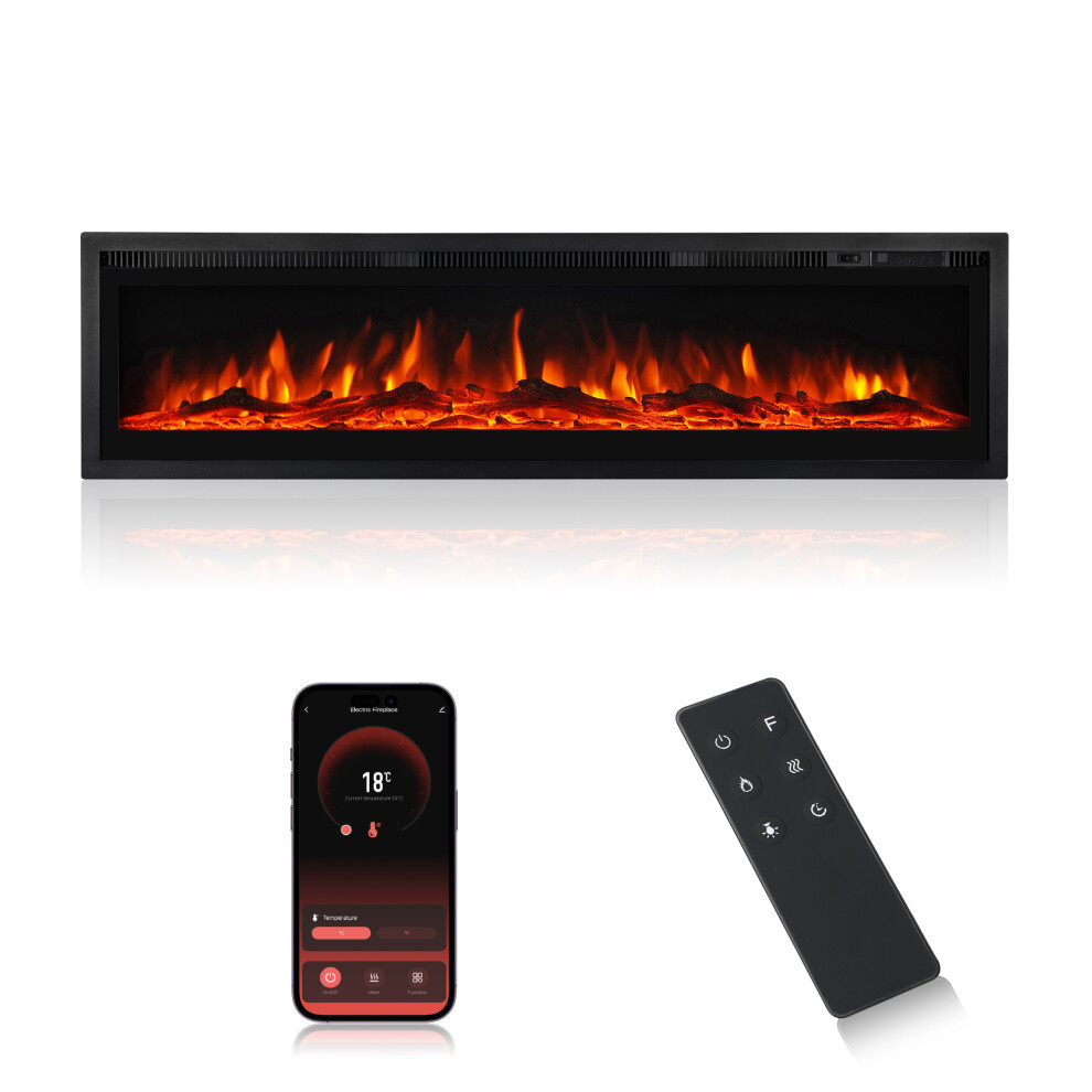 50" Electric Fireplace Heater, Wall Mount/Recessed, 1500W & 750W Modes, 7 Flame & 12 Ember Colors, Remote & Touchscreen Control, 8H Timer, 40dB Ultra-Quiet, Cool-Touch Glass, UKCA/CE Certified