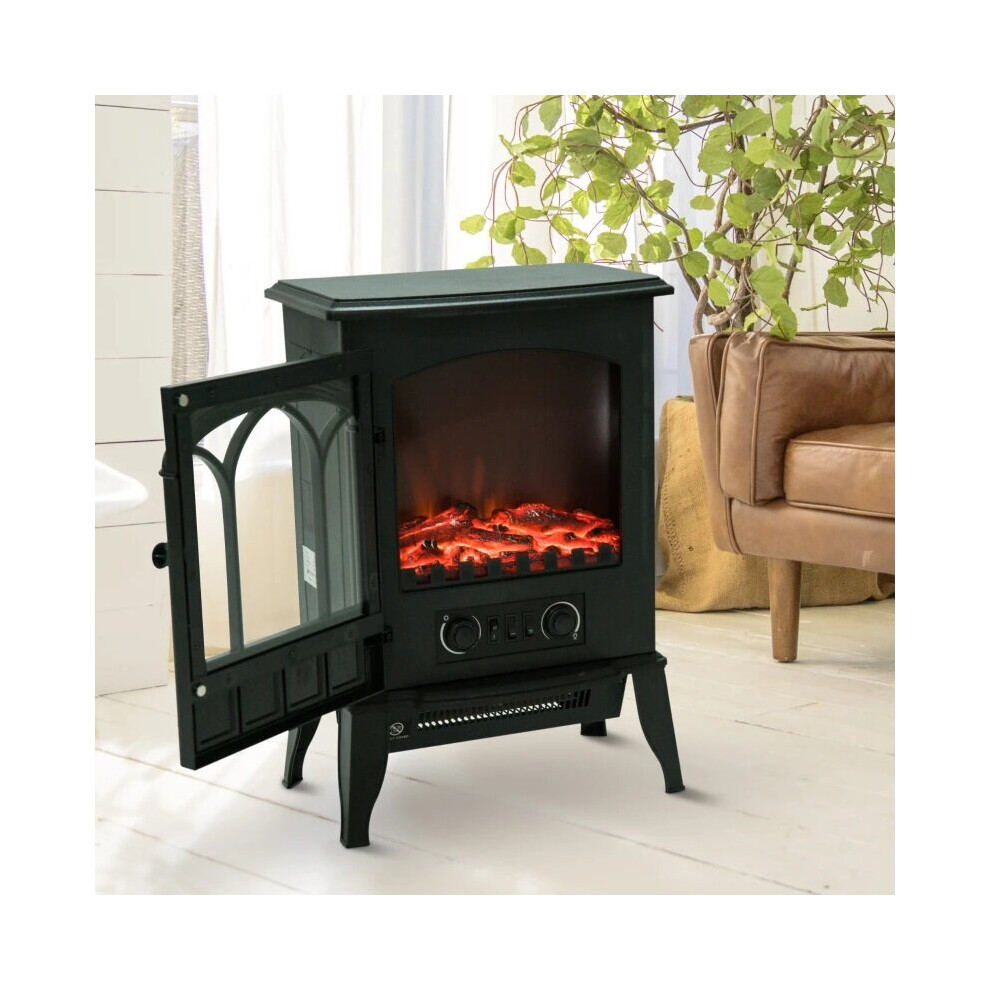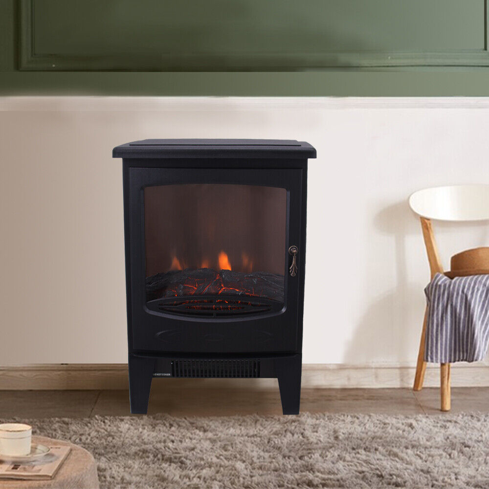 Freestanding Electric Fireplace Heater Black Stove w/ LED Flame Effect Black
