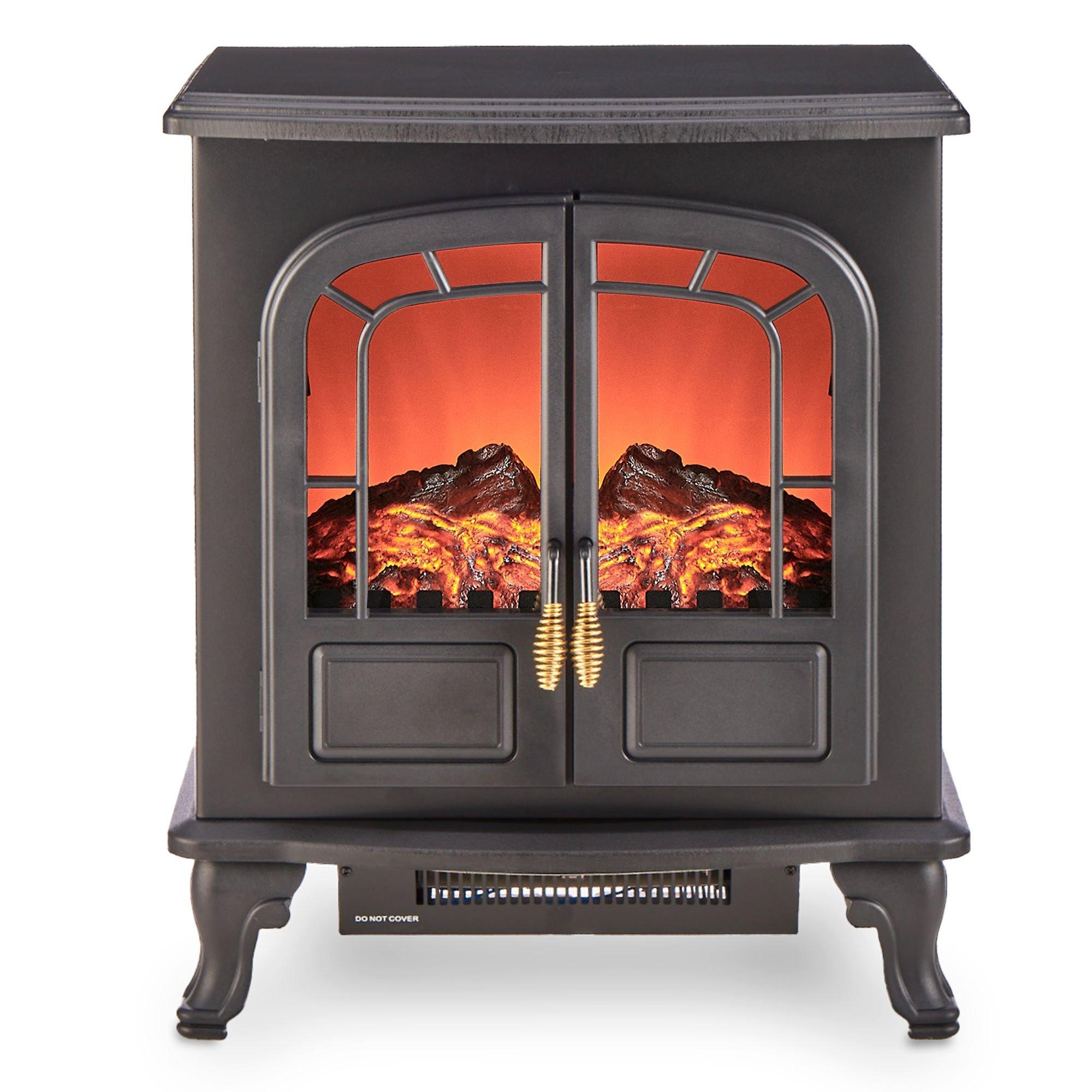 Freestanding Electric Fireplace Heater with Realistic Flame Effect, Black