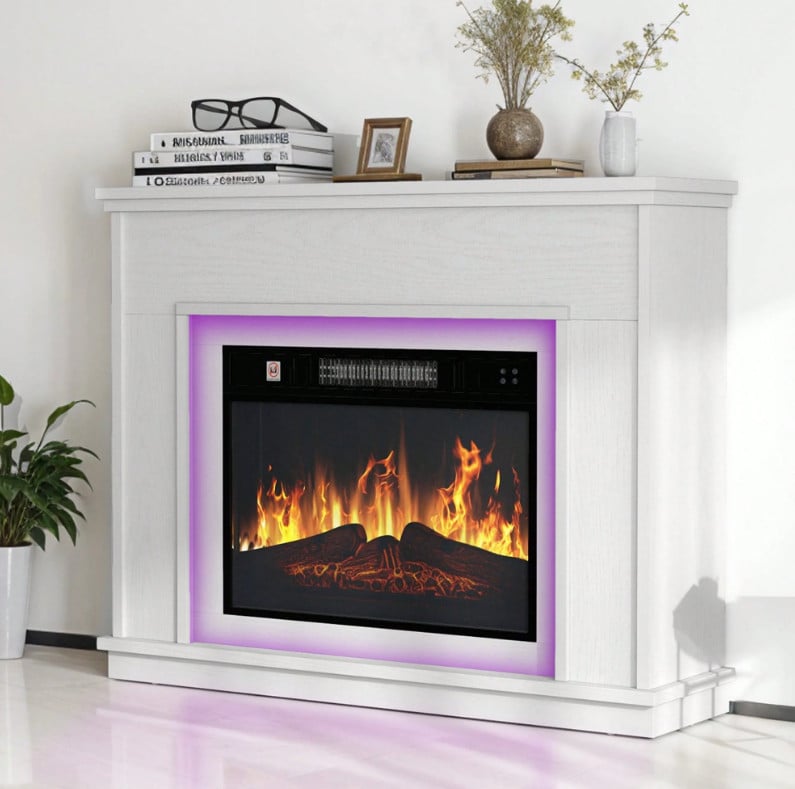 White Traditional Mantel Electric Fireplace Heater LED Flame Overheat Protection