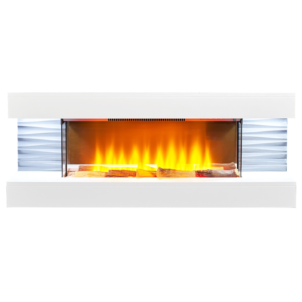 Classic Fire Montreal 2000W Electric Fireplace with Heater and Fireplace Decorative LED Fireplace with Adjustable Thermostat with Remote Control 120 x 30 x 45.7 cm White