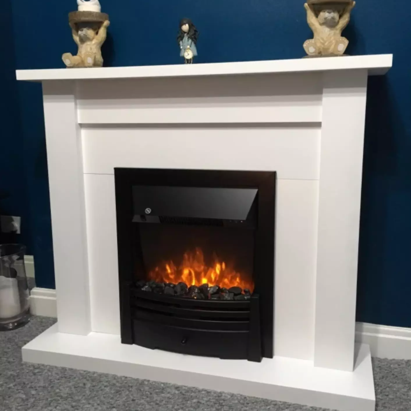 White Electric Fireplace Heater Mantelpiece Surround Set LED Flames Remote Timer