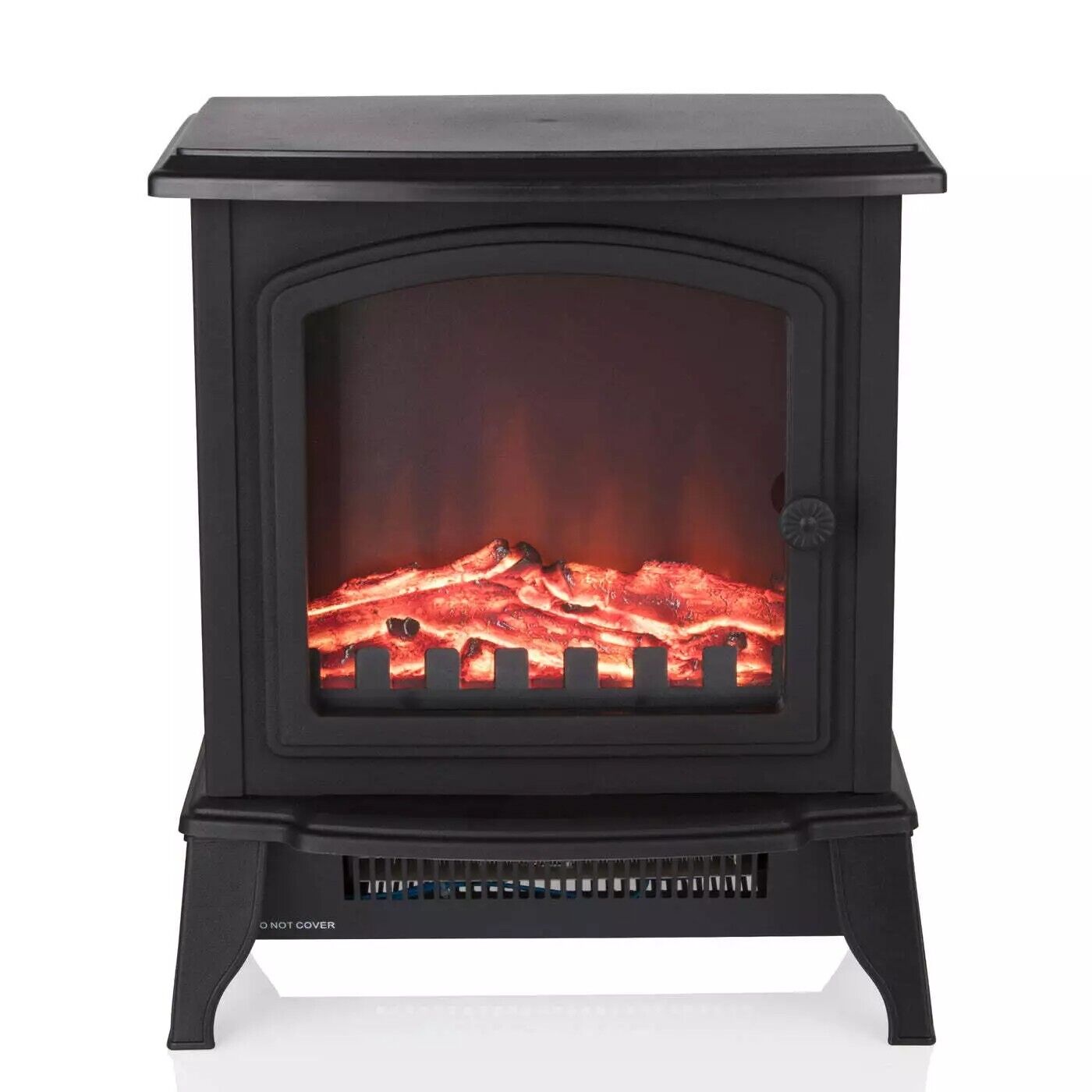 Freestanding Electric Fireplace Stove Heater With LED Flame Effect Black
