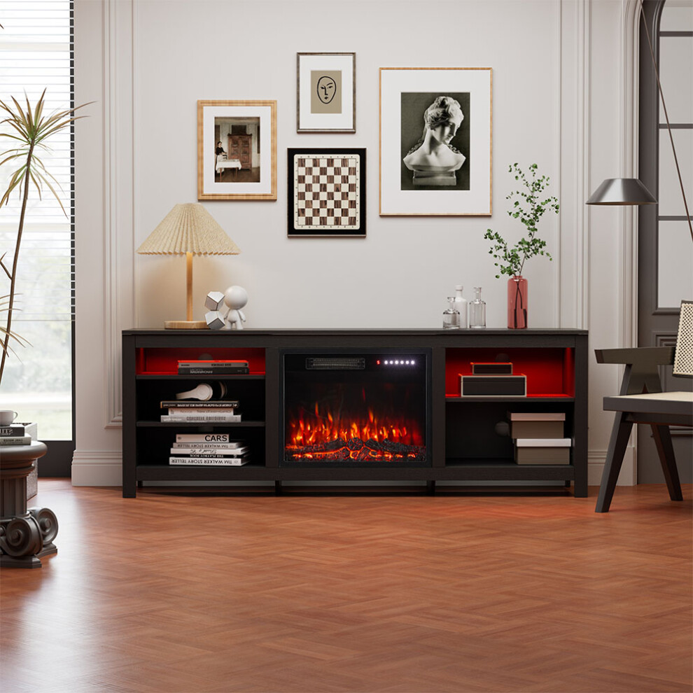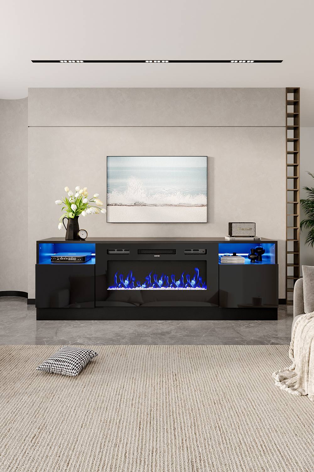 QINGGANG-0224 Ultra Slim Frame 71/79" Fireplace TV Stand for Living Room, Modern Entertainment Center with 3D Flame Electric, Remote Control(Black,Small)