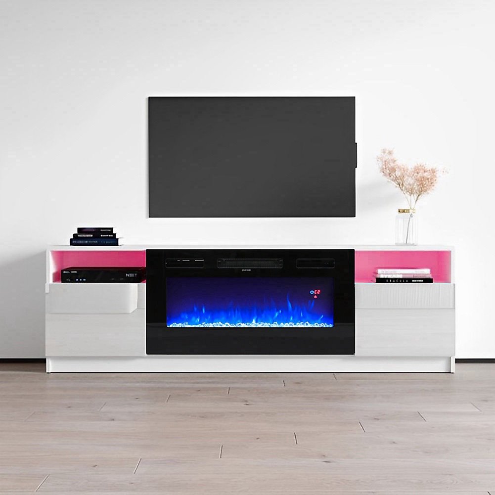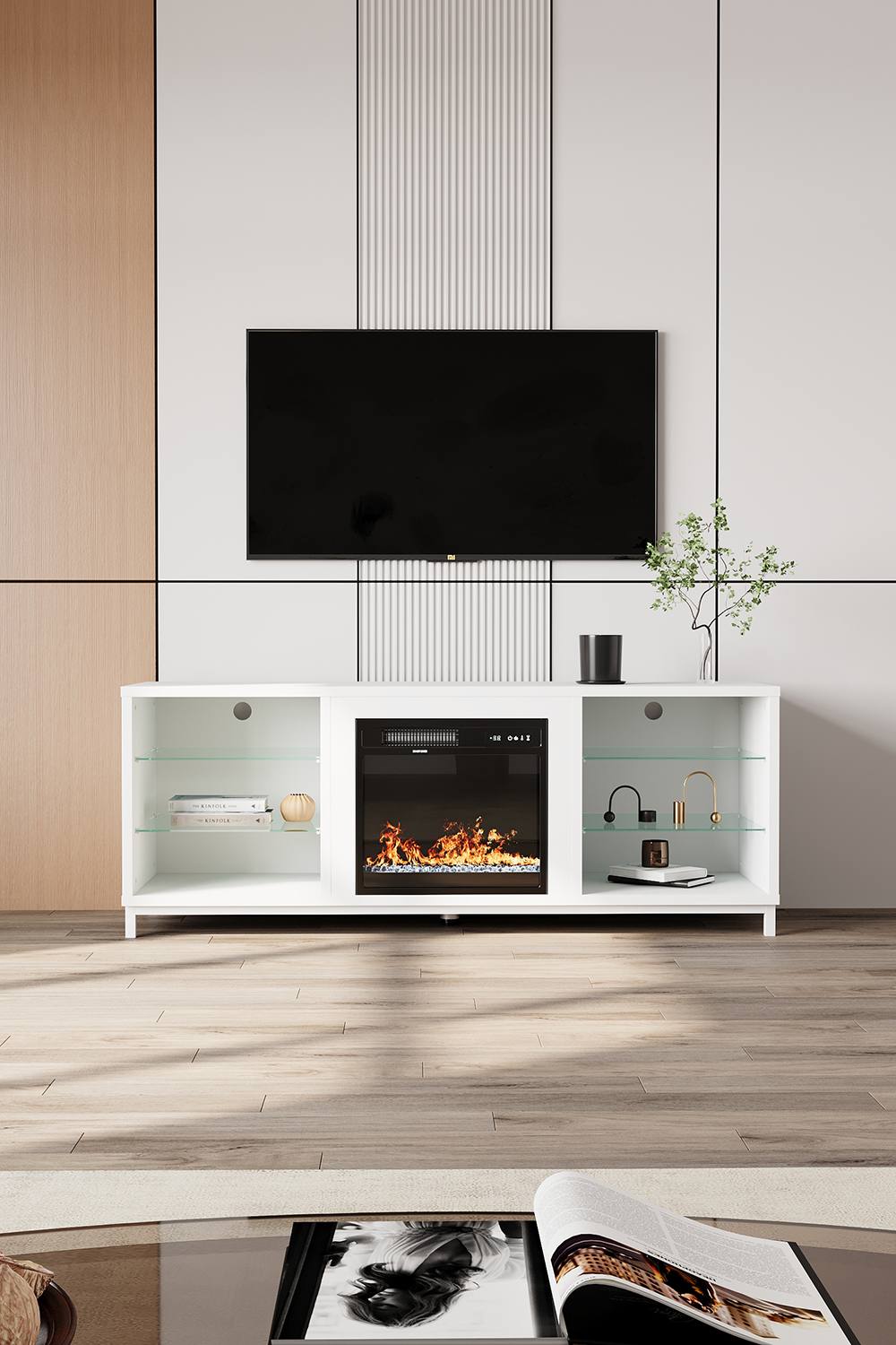 HFERTSCN Home 71/79" Fireplace TV Stand for Living Room, Modern Entertainment Center with 3D Flame Electric Fireplace, Remote Control Decor(White,Small) FANDIAO